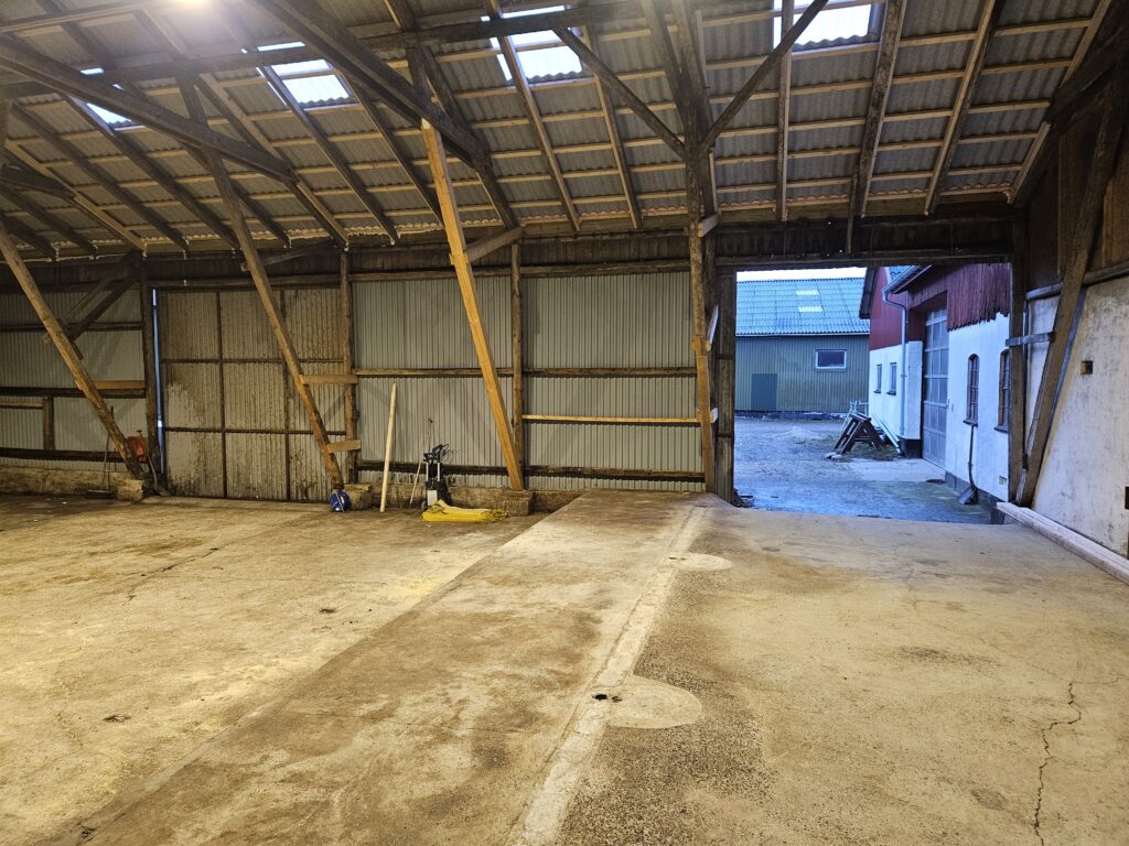 Koldhal med støbt betongulv. Adgang til køkken og toilet på ejendommen.